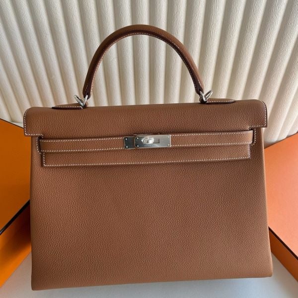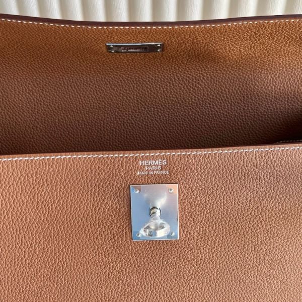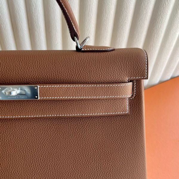 The Hermès Kelly 35cm bag is a large, versatile bag perfect for travel. While some women enjoy toting this piece for special occasions, others love the casual-chic appeal of wearing the Kelly 35cm as an oversized tote for their everyday essentials. This Kelly bag in Retourne, a relaxed style made by placing the stitches inside the bag, thanks to the taurillon Clemence leather gives this bag the buttery soft feel that only comes from the highest quality leather.