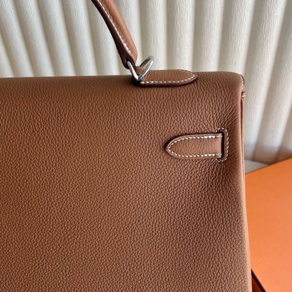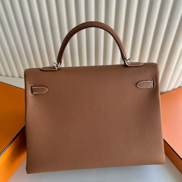 Hermes Kelly Retourne 35 Handmade Bag in Gold Clemence Leather
