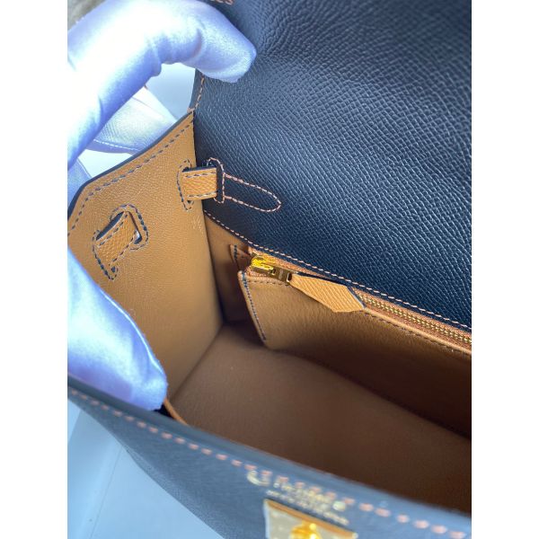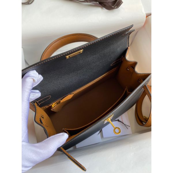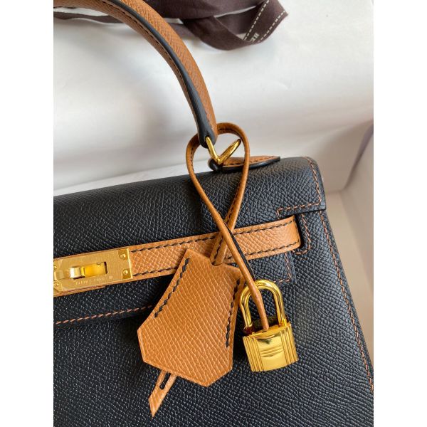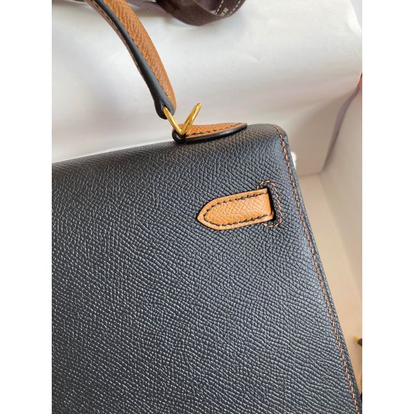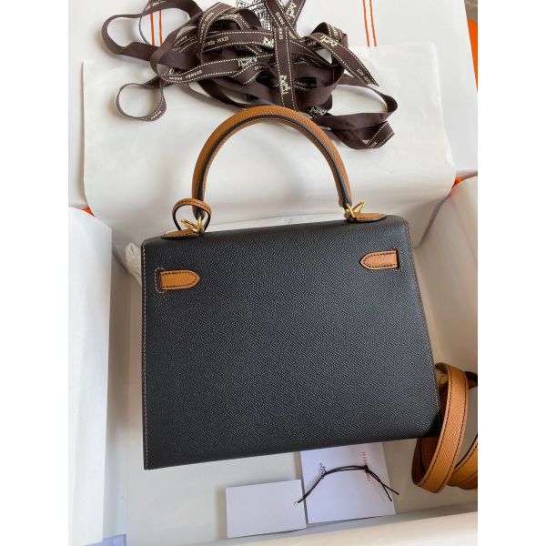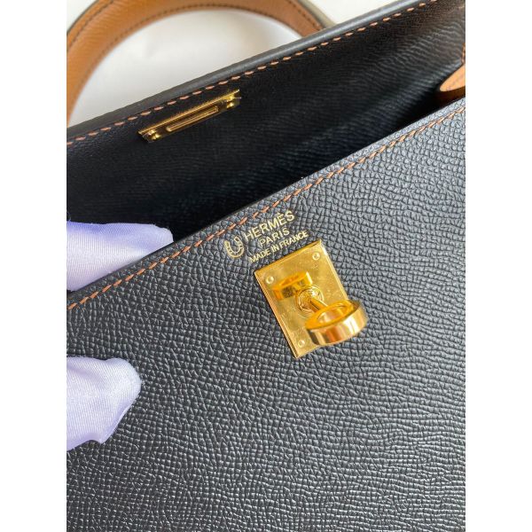 Hermes Kelly Sellier 25 Bicolor Bag in Black and Gold Epsom Calfskin