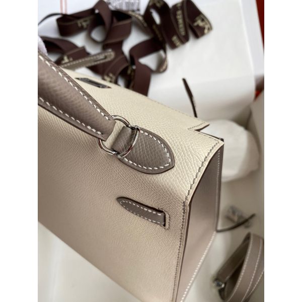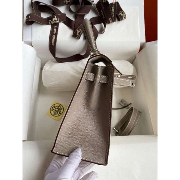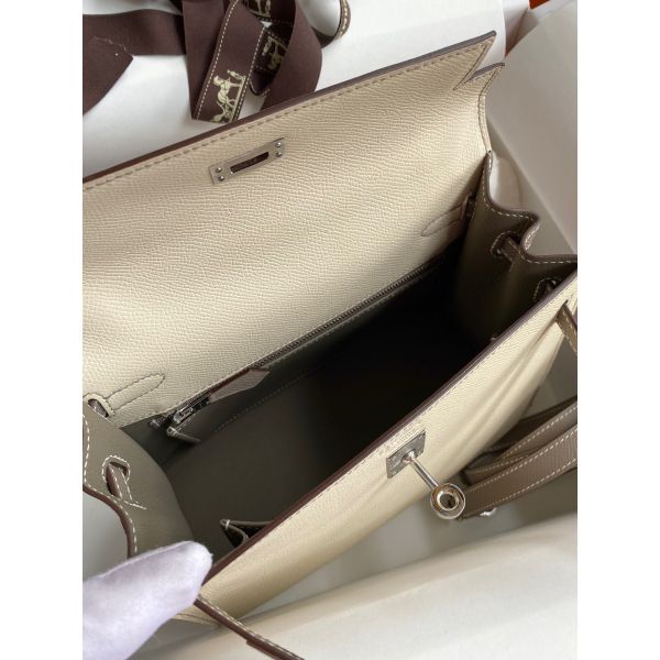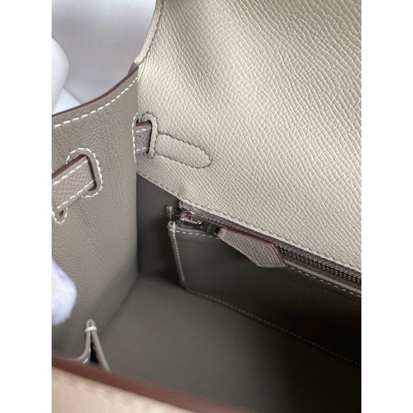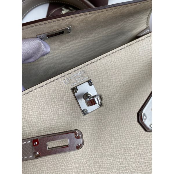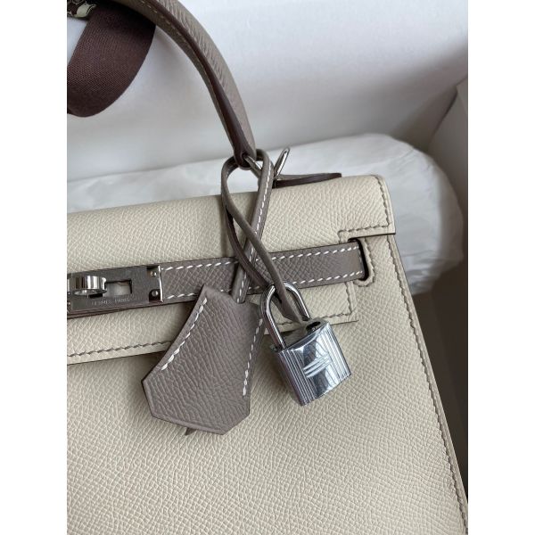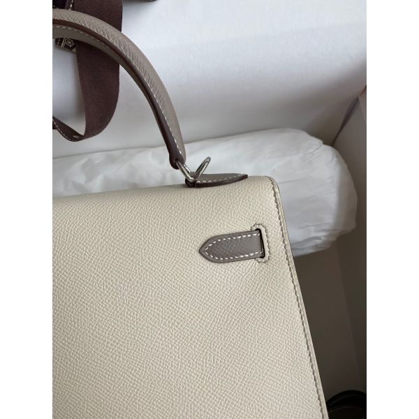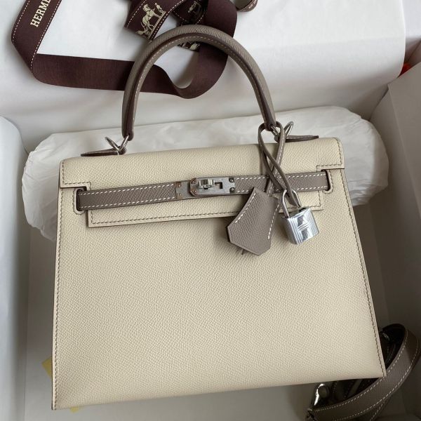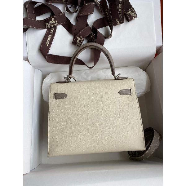 Hermes Kelly Sellier 25 Bicolor Bag in Craie and Gris Asphalt Epsom Calfskin