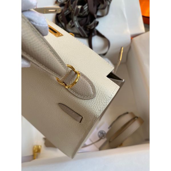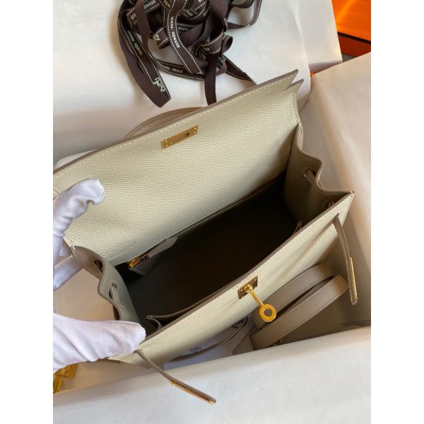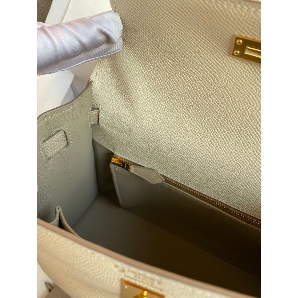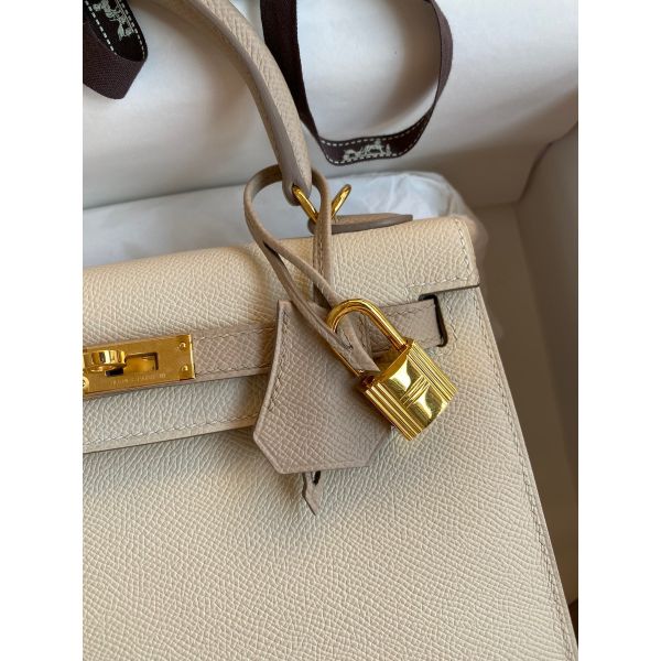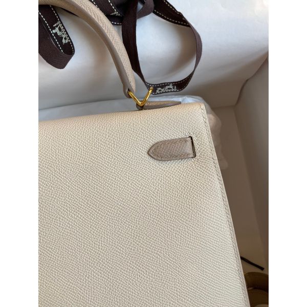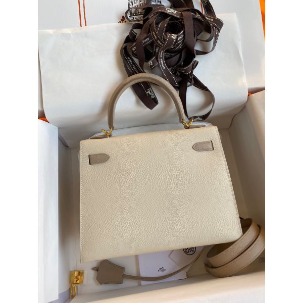 Hermes Kelly Sellier 25 Bicolor Bag in Craie and Trench Epsom Calfskin