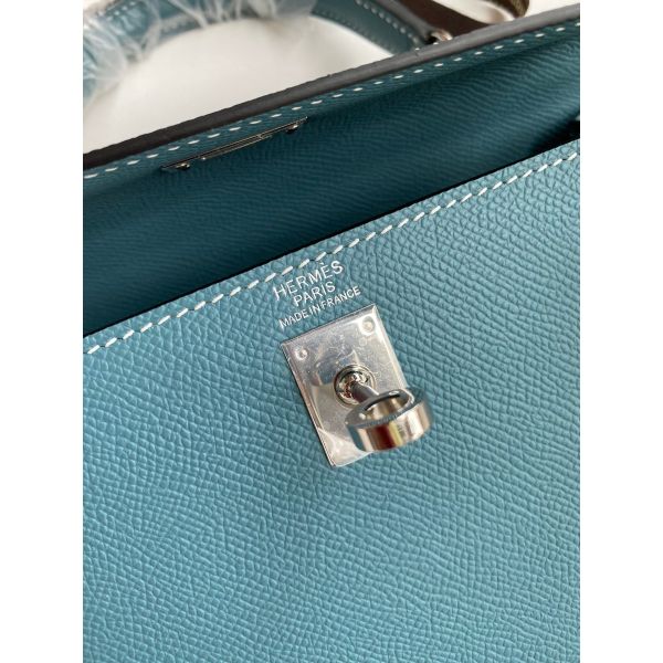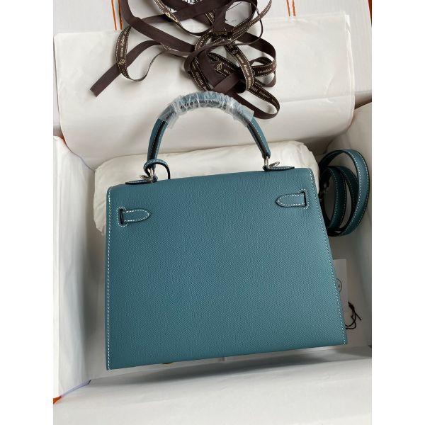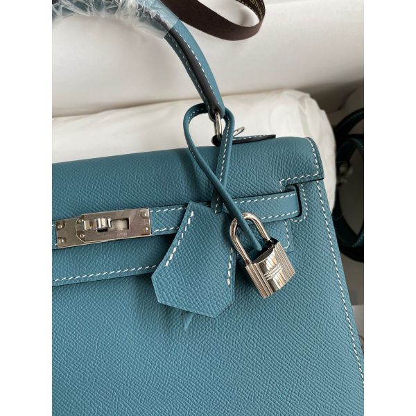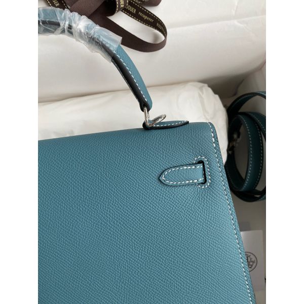 Hermes Kelly Sellier 25 Handmade Bag In Blue Jean Epsom Calfskin
