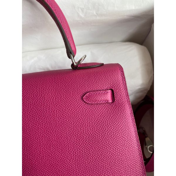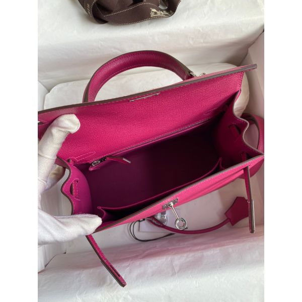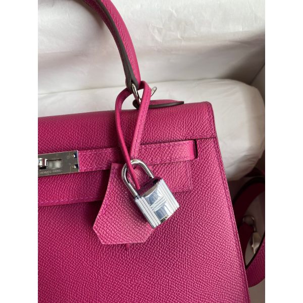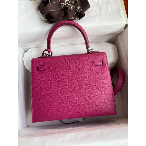 Hermes Kelly Sellier 25 Handmade Bag In Rose Purple Epsom Calfskin