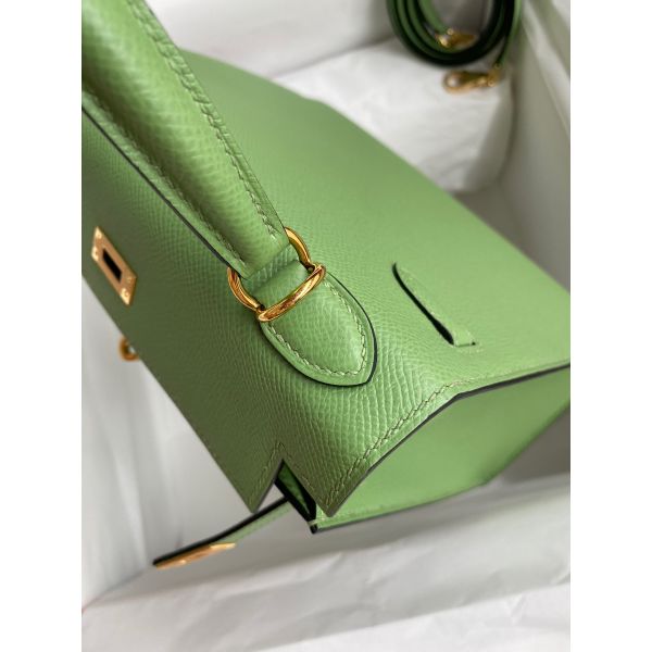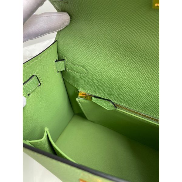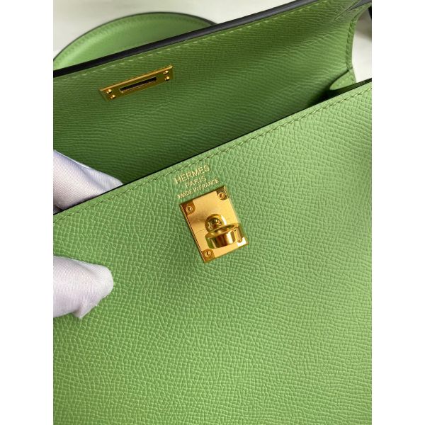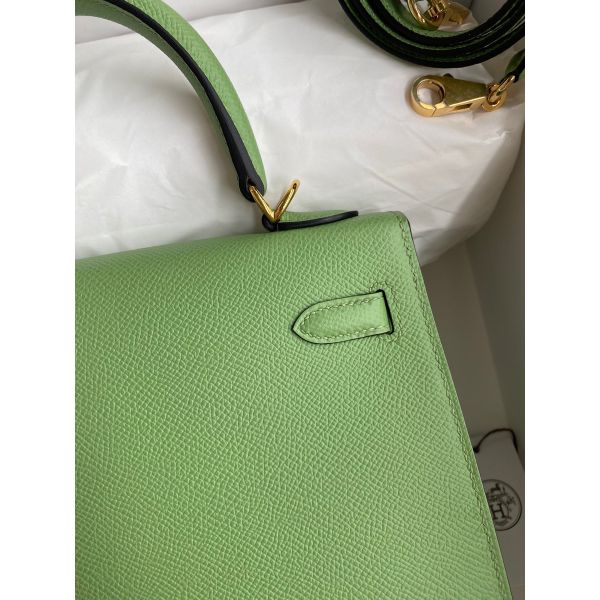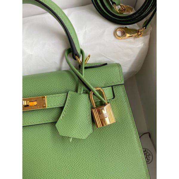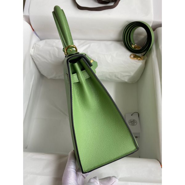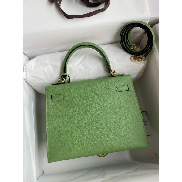 Hermes Kelly Sellier 25 Handmade Bag In Vert Criquet Epsom Calfskin