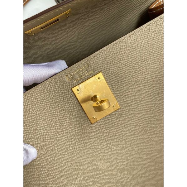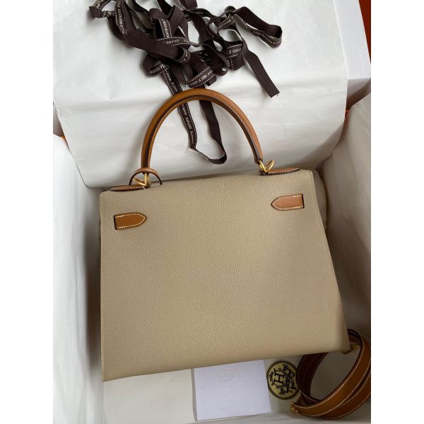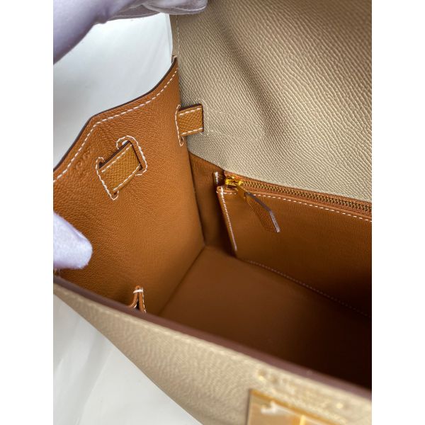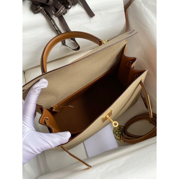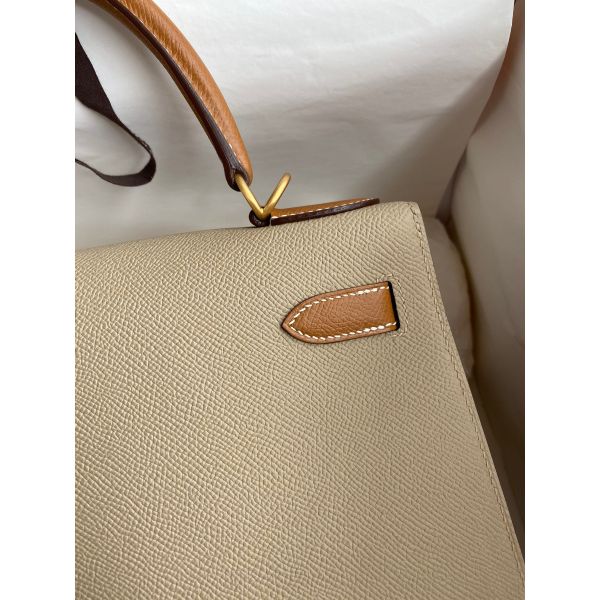 Hermes Kelly Sellier 28 Bicolor Bag in Trench and Gold Epsom Calfskin