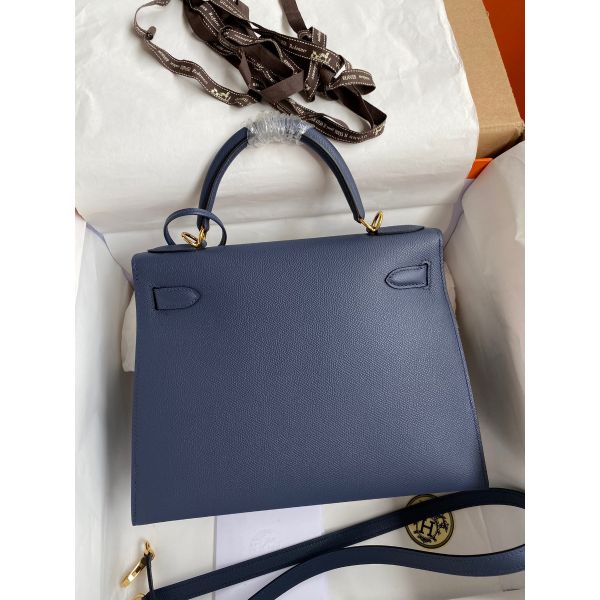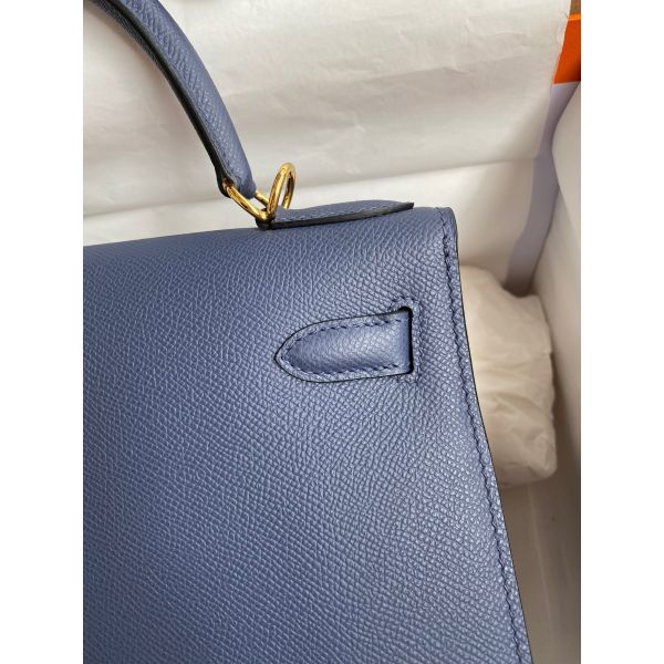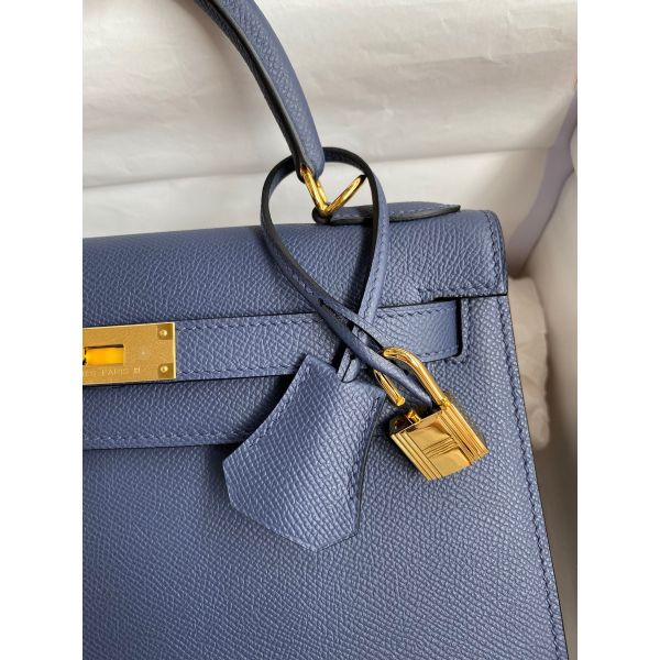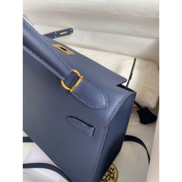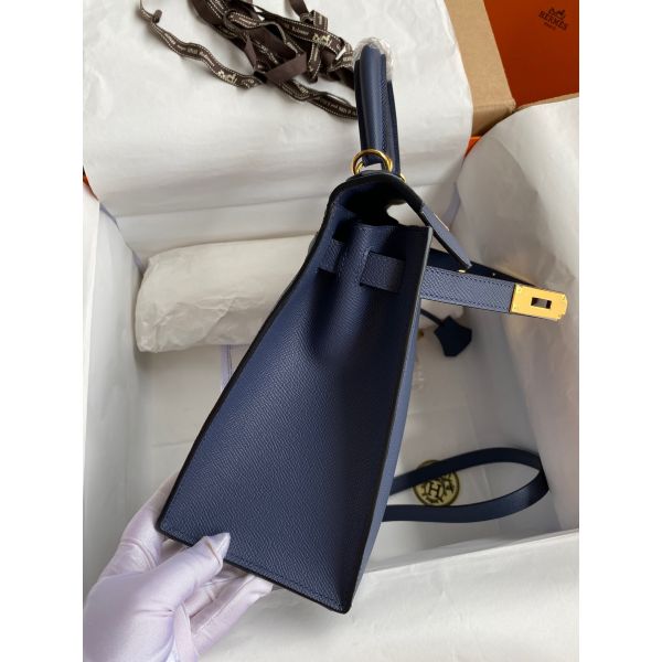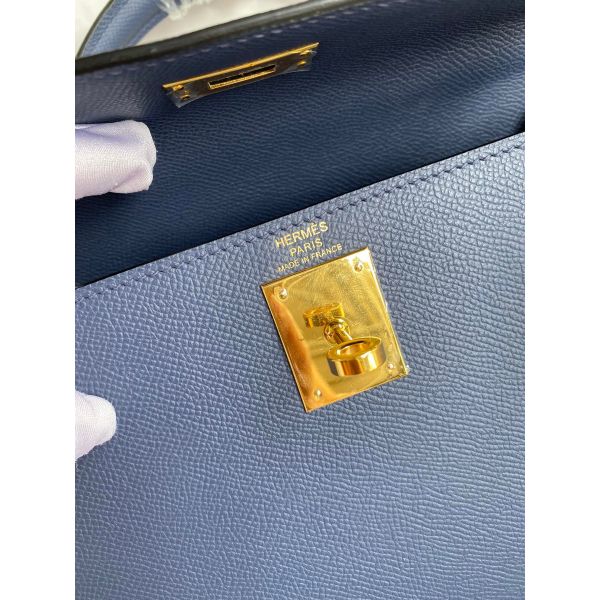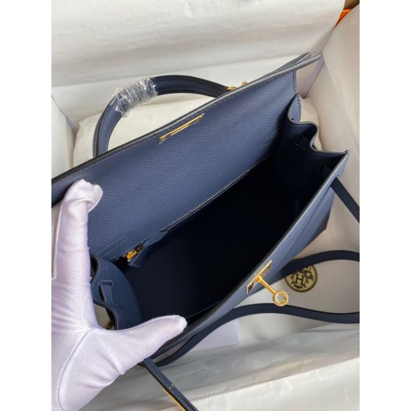 Hermes Kelly Sellier 28 Handmade Bag In Blue Saphir Epsom Calfskin