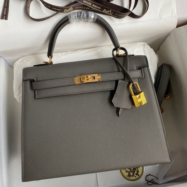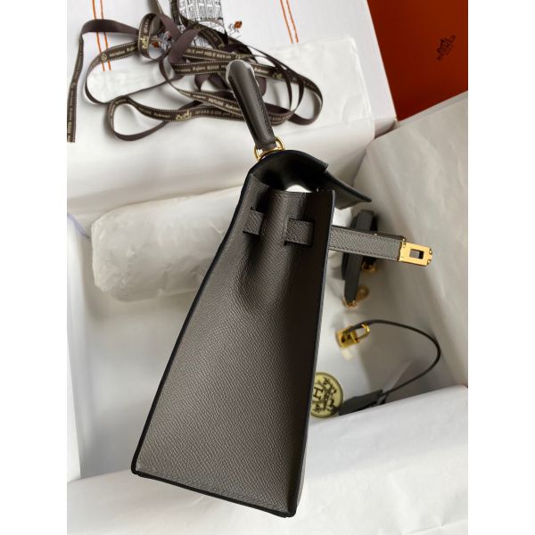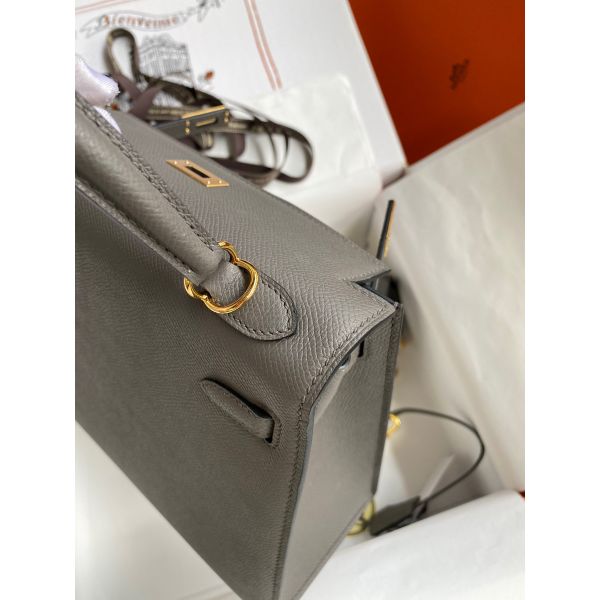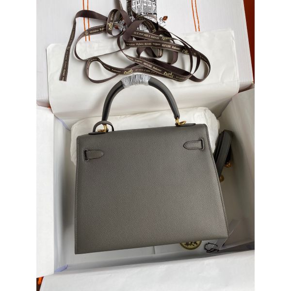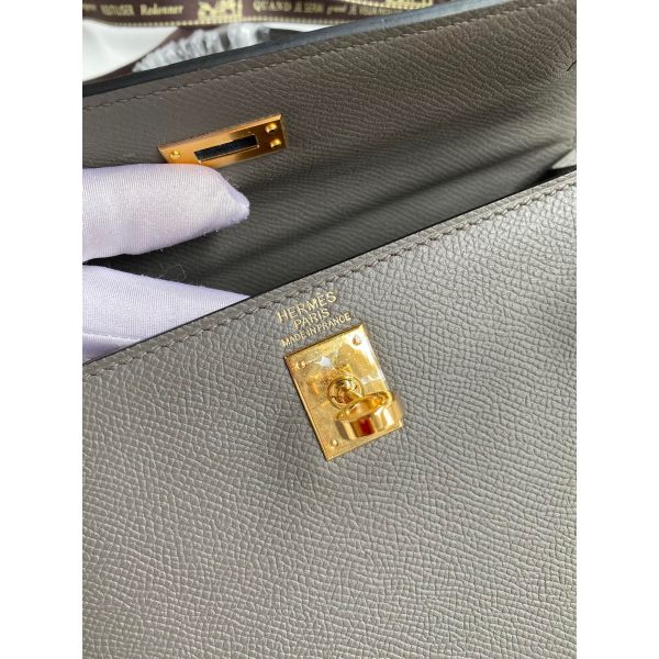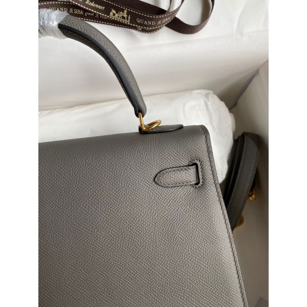 Hermes Kelly Sellier 28 Handmade Bag In Etain Epsom Calfskin