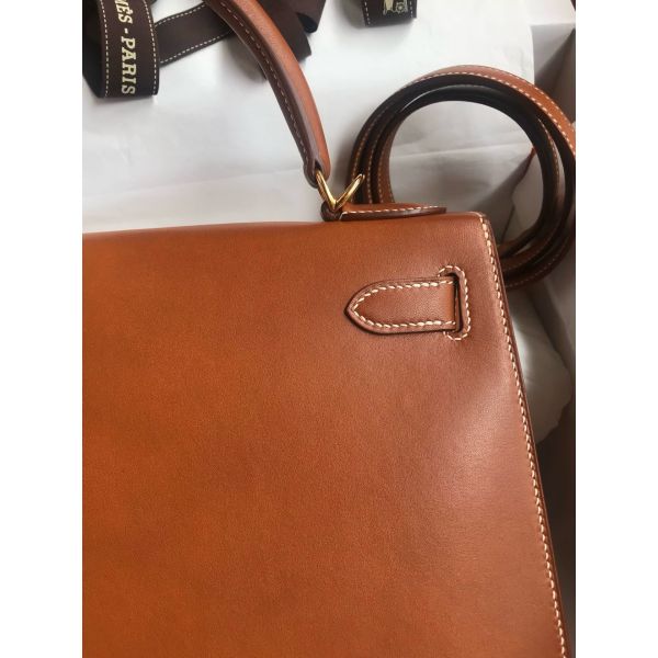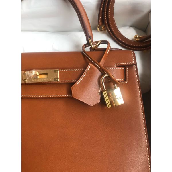 Hermes Kelly Sellier 28 Handmade Bag In Gold Barenia Calfskin