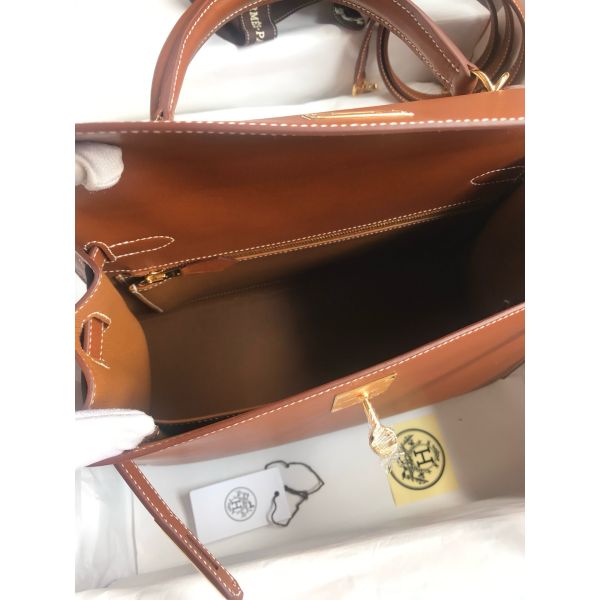 Long lauded as a statement of timeless and effortless class, the Hermès Kelly bag remains an emblematic piece of modern glamour. The Kelly Sellier is also a more structured, rigid bag thanks to the Barenia Natural leather, this leather was originally used for Hermès saddles and is without a doubt one of the finest leathers available. 28 size is perfect for any occasion whether you are shopping with the girls or to carry your dinners and nights-out essentials.
