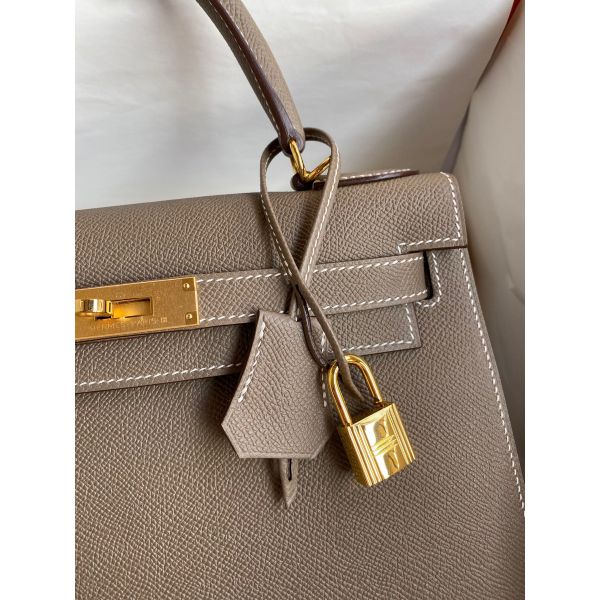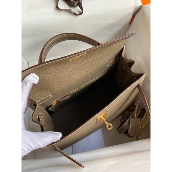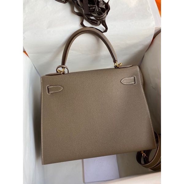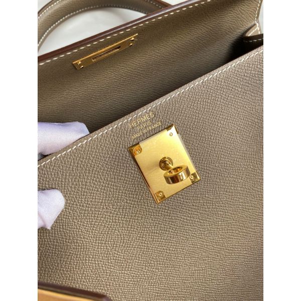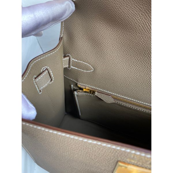 Hermes Kelly Sellier 28 Handmade Bag In Taupe Epsom Calfskin