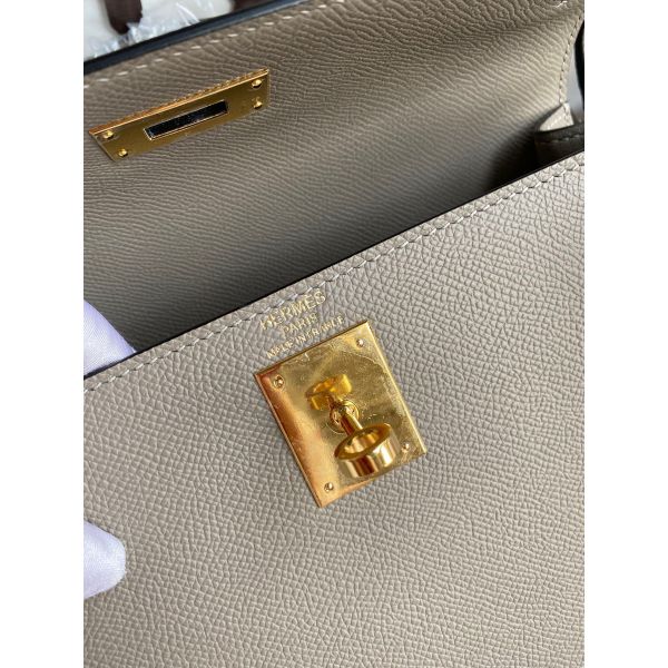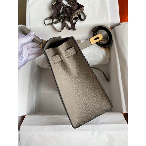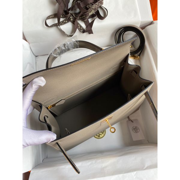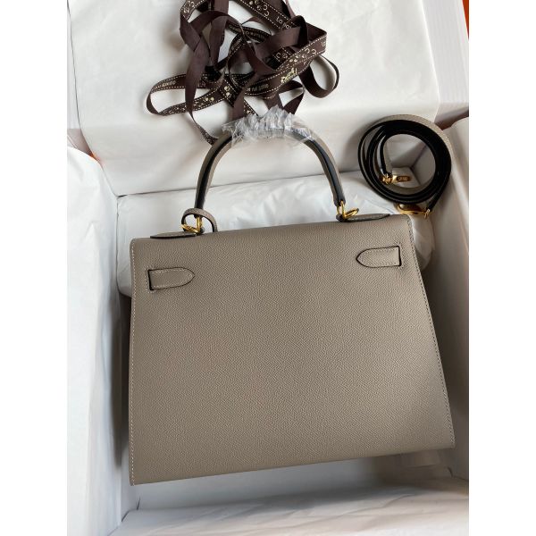 The iconic trapezoid shape of the Hermes Kelly 32 was a striking departure from the ornate handbag styles of the day. The chic look took the world by storm when legendary actress, and crowned princess of Monaco, Grace Kelly was photographed holding her Hermès Sac à Dépêches bag to shield her baby bump from the paparazzi. This Kelly 32 bag in Sellier, a rigid style made by stitching the sides of the bag on the outside, thanks to the Epsom calfskin. It is an ideal daily bag for the busy woman on the go. It is spacious enough to carry all your everyday essentials.