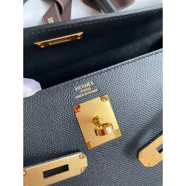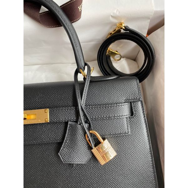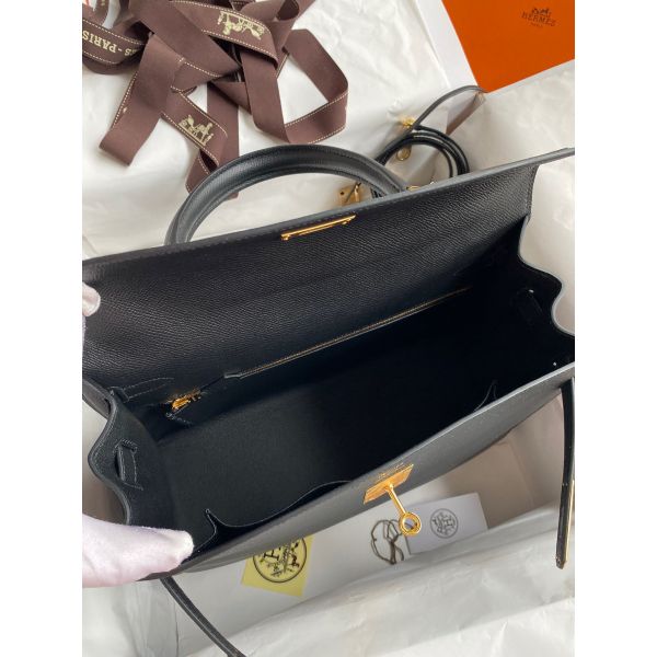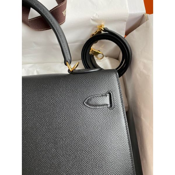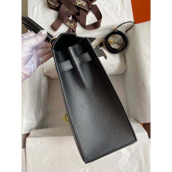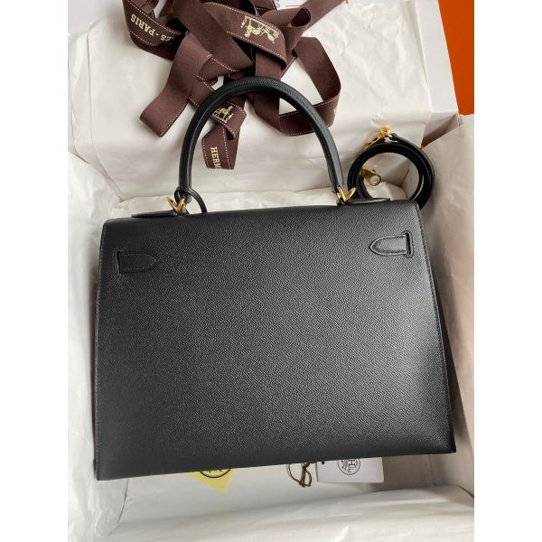 Hermes Kelly Sellier 32 Handmade Bag In Black Epsom Calfskin