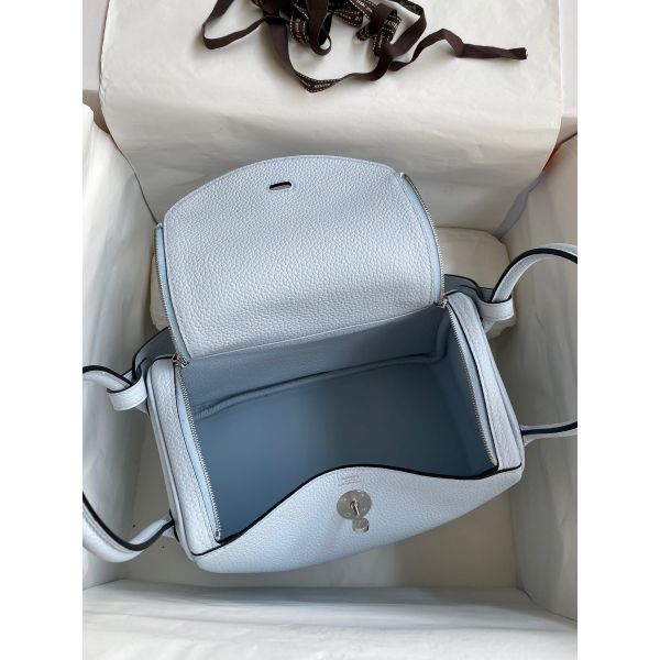 Hermes Lindy 26 Handmade Bag In Blue Brume Clemence Leather
