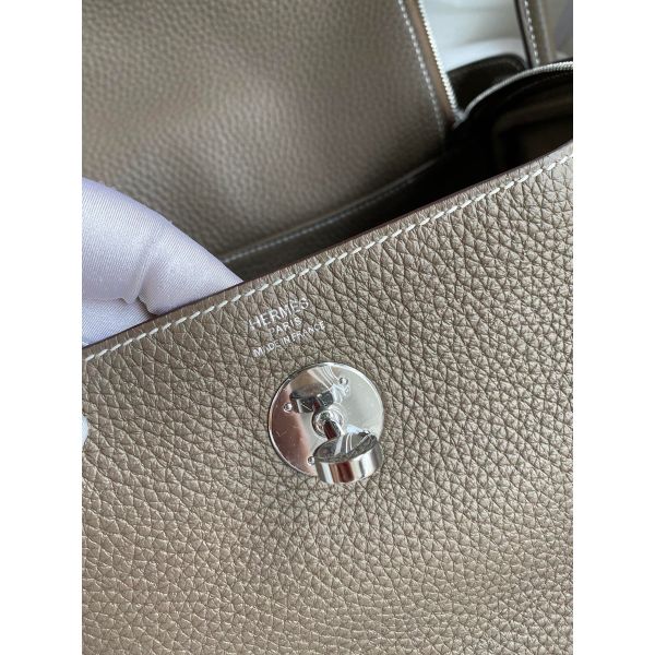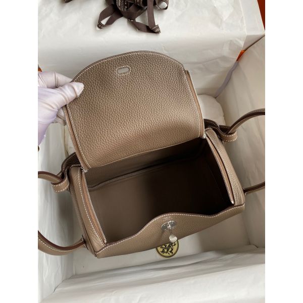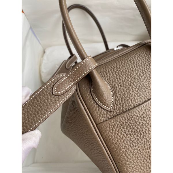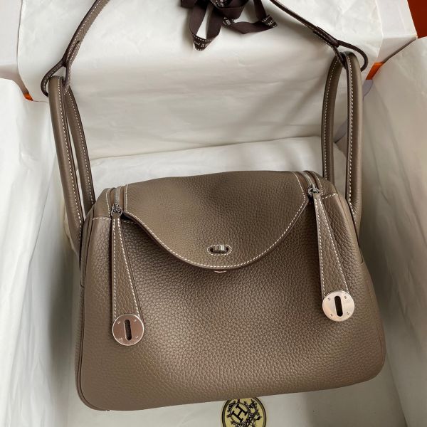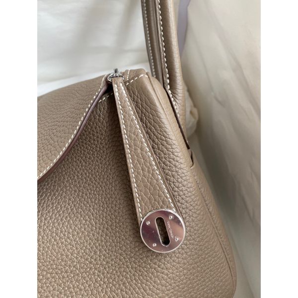 Hermes Lindy 26 Handmade Bag In Taupe Clemence Leather