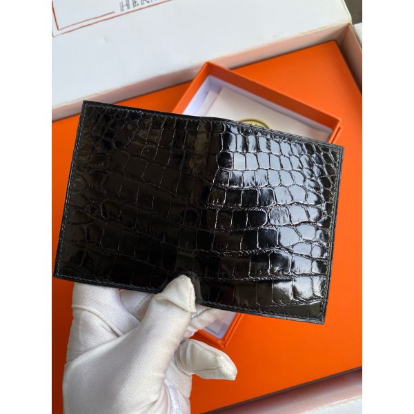 Hermes MC² Euclide Card Holder in Black Shiny Alligator Leather