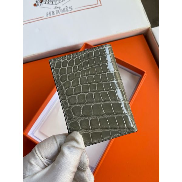Hermes MC² Euclide Card Holder in Tourterelle Shiny Alligator Leather