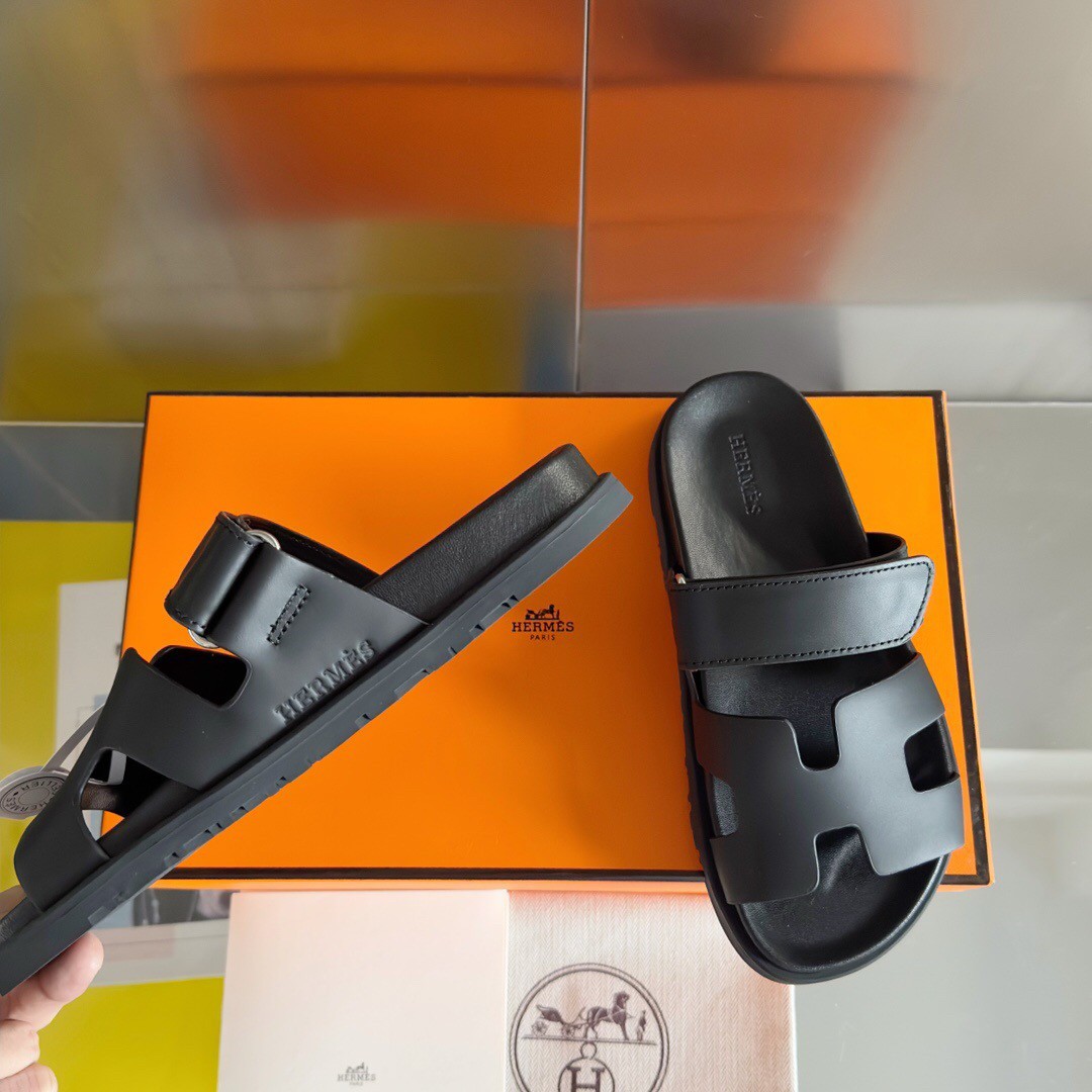 Hermes Men’s Chypre Sandals in Black Calfskin