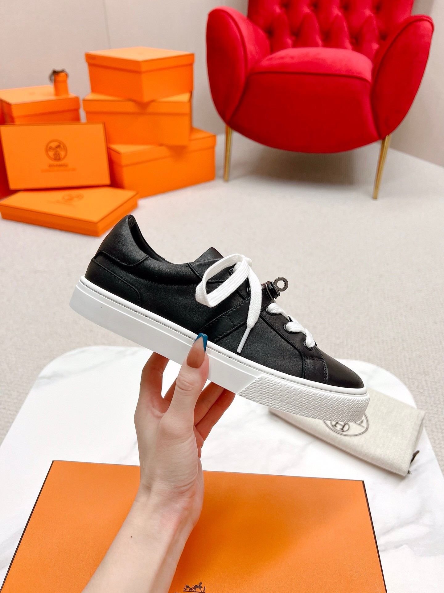 These stylish and easy to wear Hermes lace-up sneakers are a great addition to any wardrobe! Luxurious leather lined uppers with a stylish strap and Kelly buckle. Leather lined upper and rubber soles for a comfortable fit and a touch of class. This is a unique style any fashionista would not want to miss!