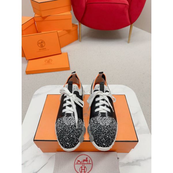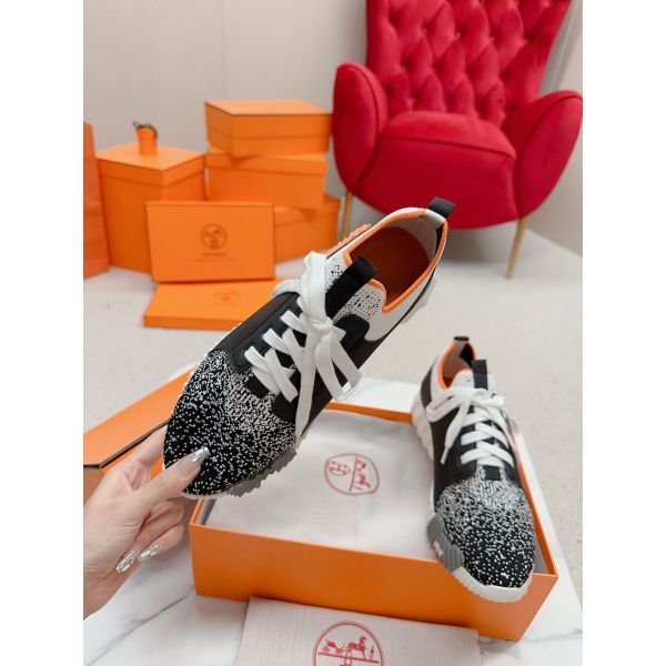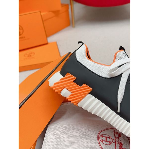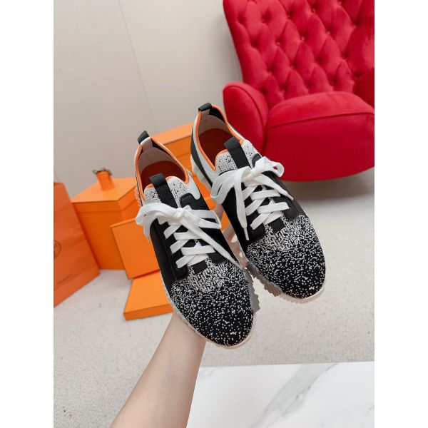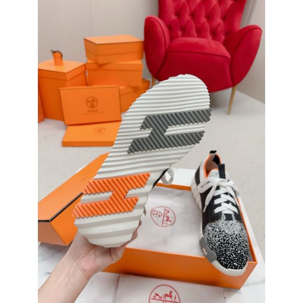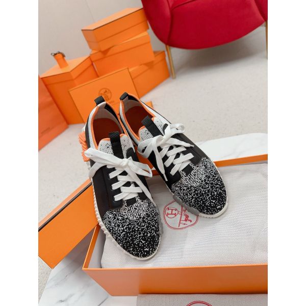 The Hermes Depart Sneakers offer a modern, sporty look with a gradient knit calfskin upper and a lightweight rubber sole with a signature orange edge. Perfect for everyday wear and long-term comfort, this sneaker is designed to be lightweight yet supportive.