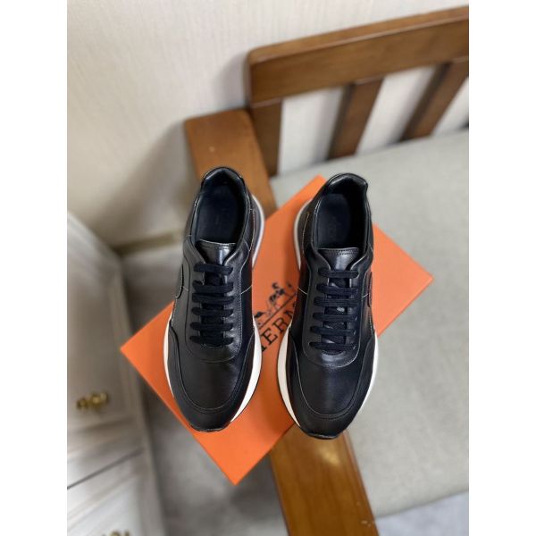 Sneaker in calfskin featuring contrasting topstitching and an “Hermes Paris” leather patch. An 80’s-inspired sporty chic look. This pair features “Ex-Libris” on the outside of the shoe.