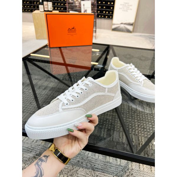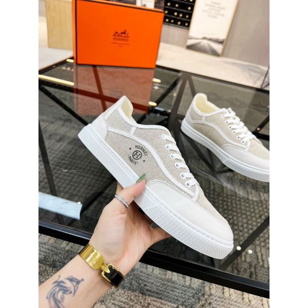 The Hermes Get Sneaker, a comfortable everyday classic sneaker. This pair of Men’s Get Sneakers comes in H canvas. It features a new “Hermès Paris” print on the outside of the shoe for the perfect modern, summer look. This is a perfect sneaker for everyday wear and is super comfy.