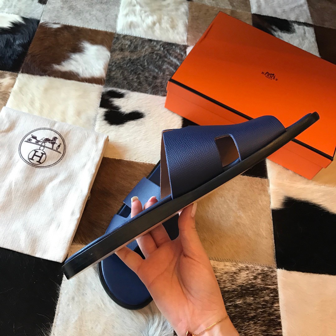 Hermes Men’s Izmir Sandals In Blue Saphir Epsom Calfskin