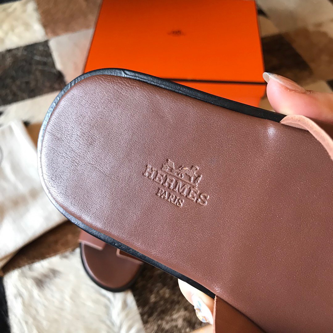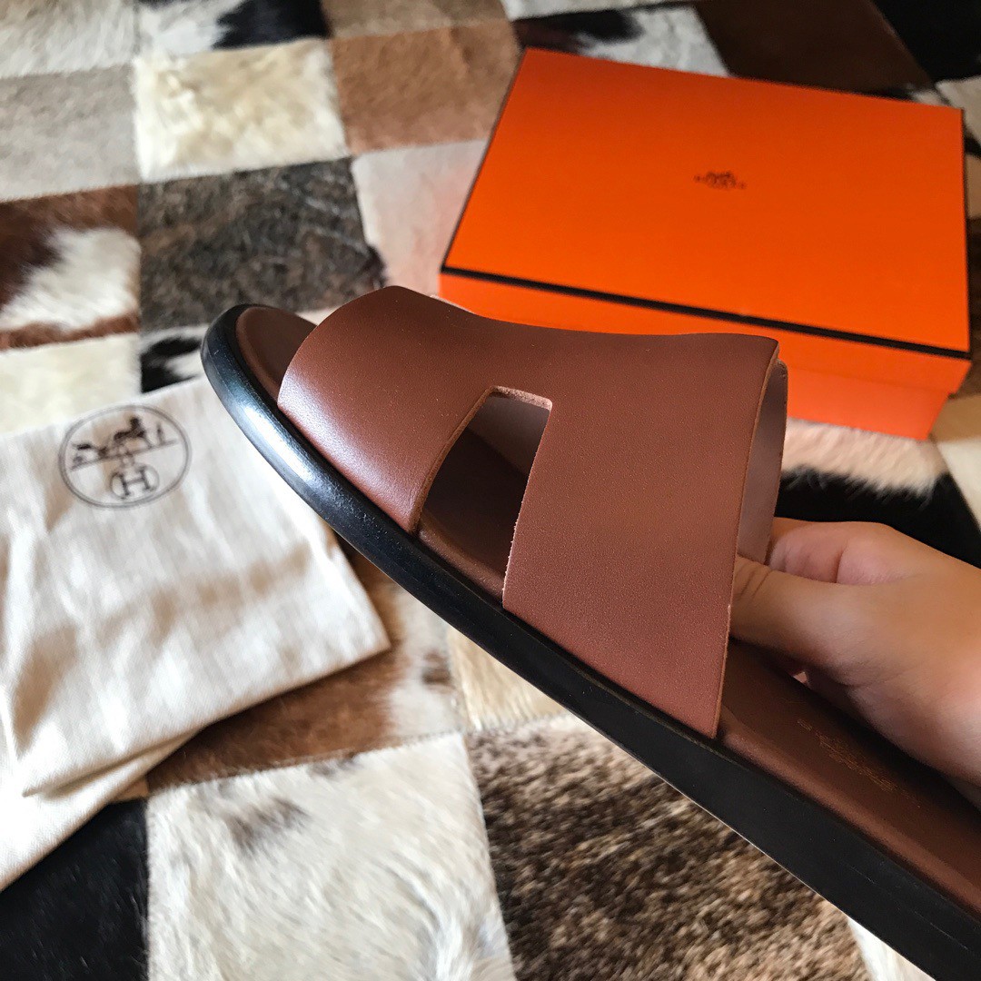 Hermes Men’s Izmir Sandals In Brown Swift Calfskin