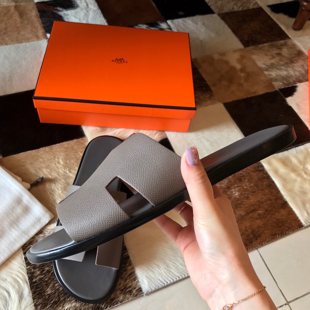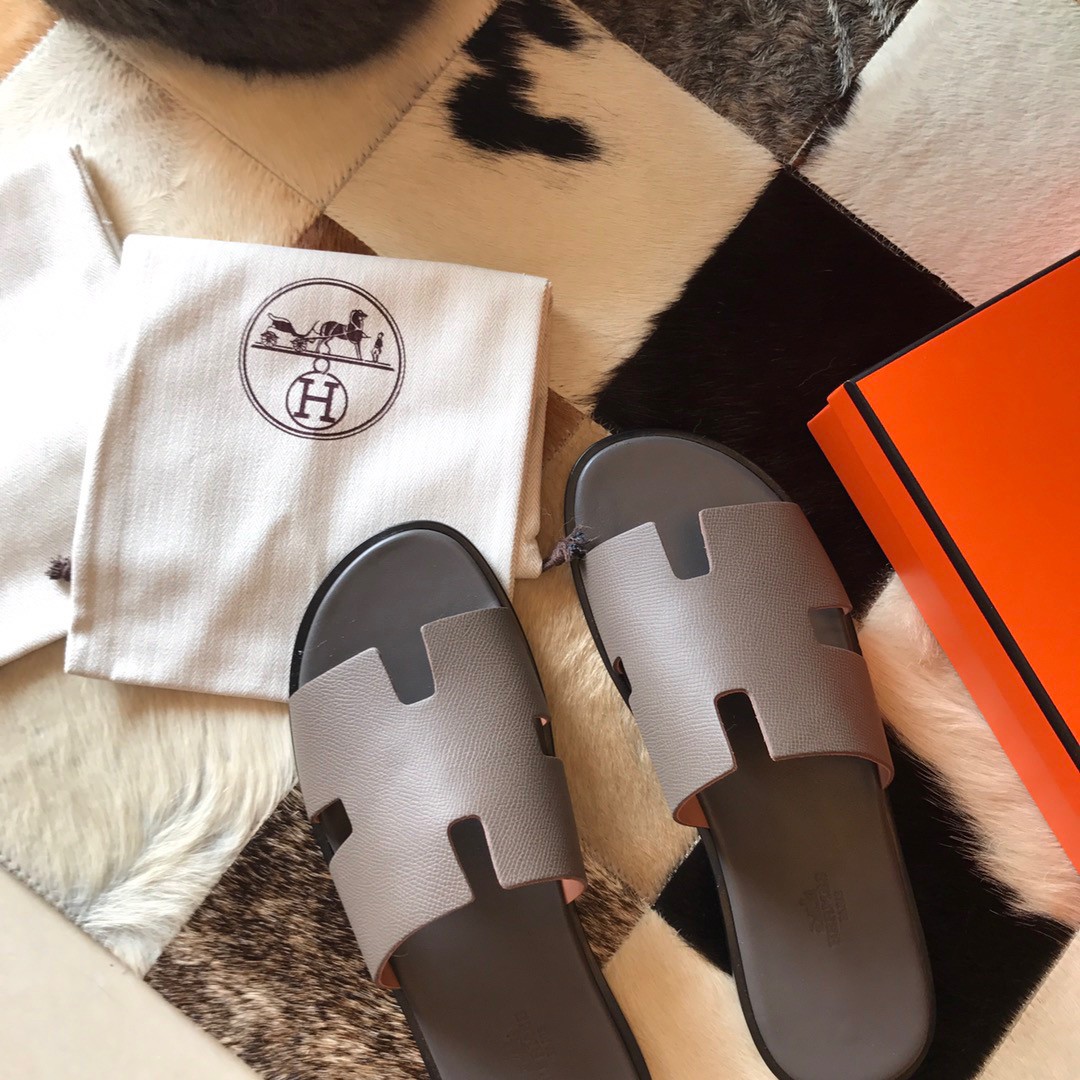 Hermes Men’s Izmir Sandals In Grey Epsom Calfskin