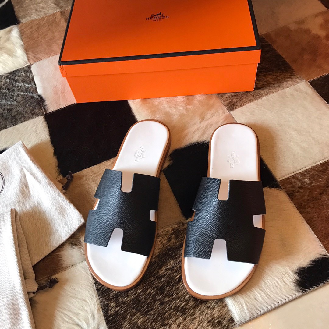 Hermes Men’s Izmir Sandals In Noir Epsom Calfskin
