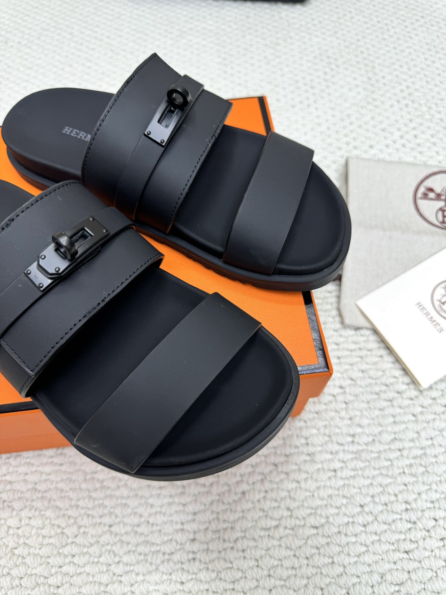 The Hermes Jackson sandal offers an elegant style with relaxed appeal. The design presents the straps, highlighting the smooth calfskin. Completed by a Hermes signature on the Kelly buckle and tonal notched sole, the sandal will pair easily with Bermuda shorts or jeans.