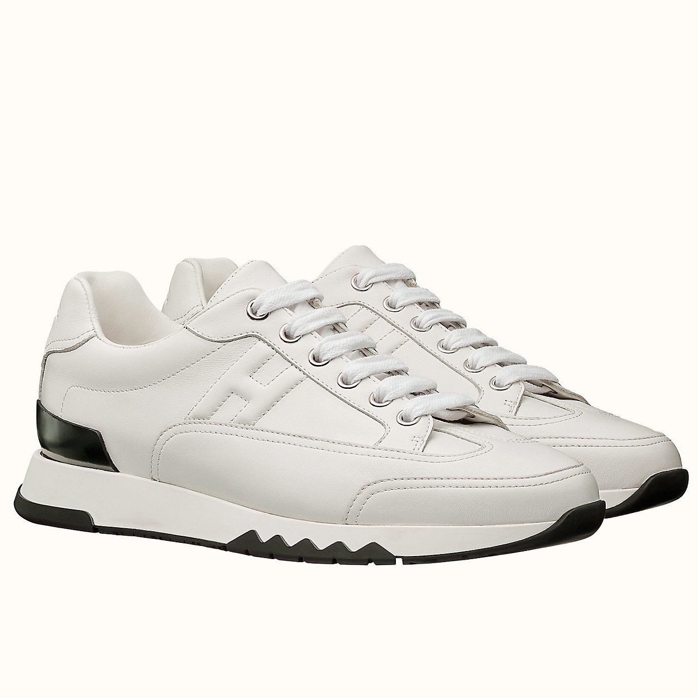 These stylish and easy to wear Hermes Goal lace-up sneakers are a great addition to any wardrobe! Calfskin leather uppers feature H logos on the sides. Leather lined uppers and rubber soles for a comfortable fit and a touch of class. This is a unique style any fashionista would not want to miss!
