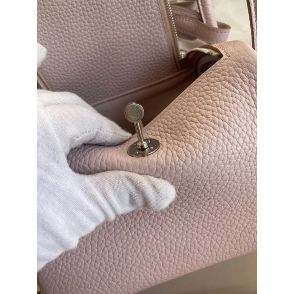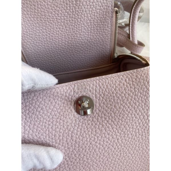 Hermes Mini Lindy Handmade Bag in Mauve Pale Clemence Leather