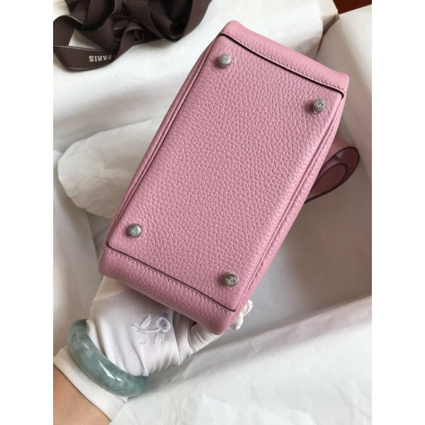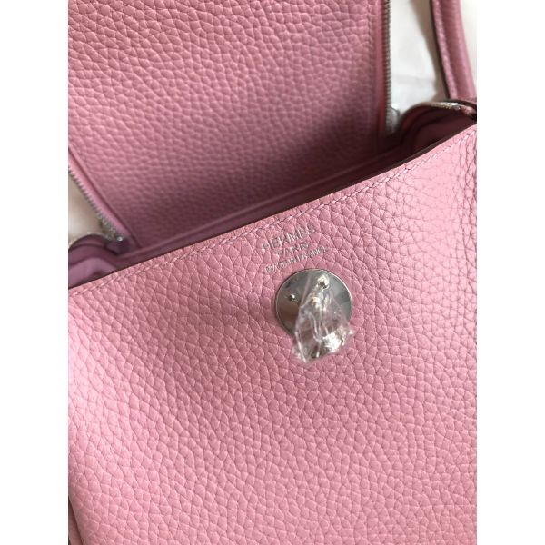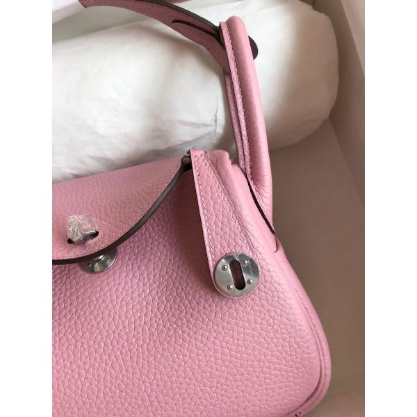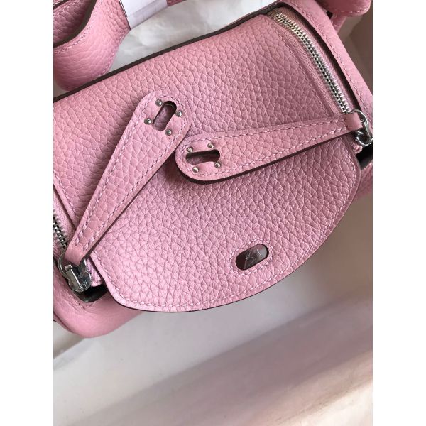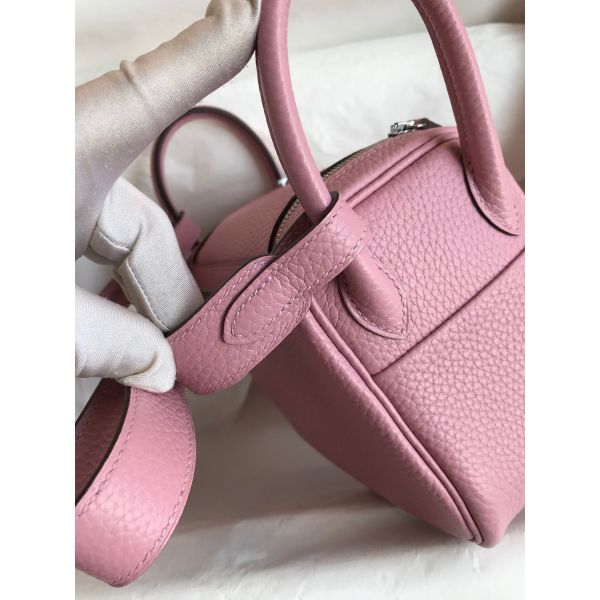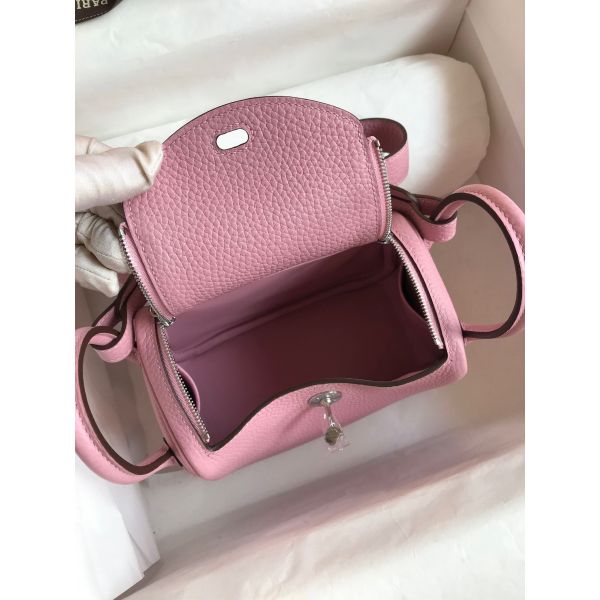 Hermes Mini Lindy Handmade Bag In Pink Clemence Leather