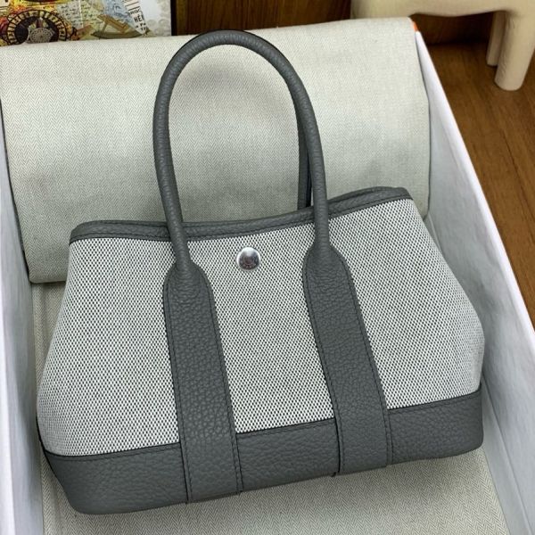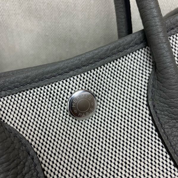Hermes Neo Garden Party 23 Bag in Canvas and Gris Meyer Negonda Calfskin