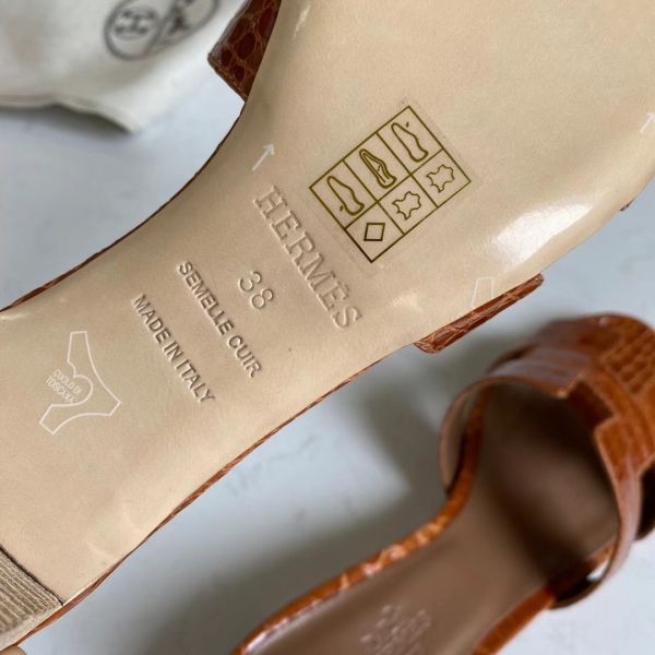 Hermes Oasis Sandals In Brown Shiny Niloticus Crocodile