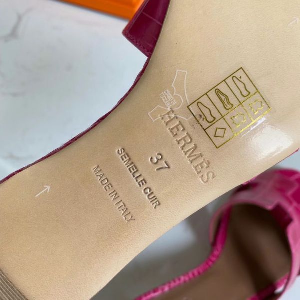 Hermes Oasis Sandals In Rose Red Shiny Niloticus Crocodile