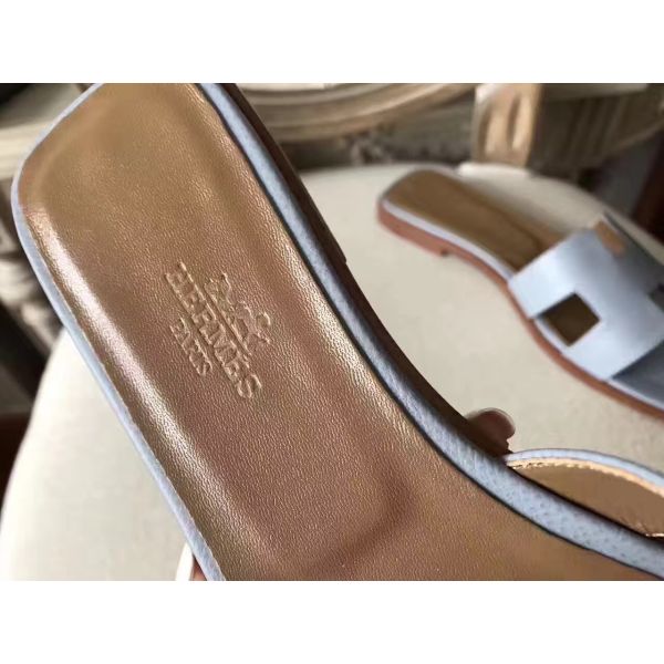 Hermes Oran Sandals In Blue Lin Epsom Leather