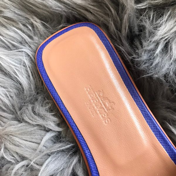 Hermes Oran Slide Sandals In Blue Epsom Perforated Calfskin
