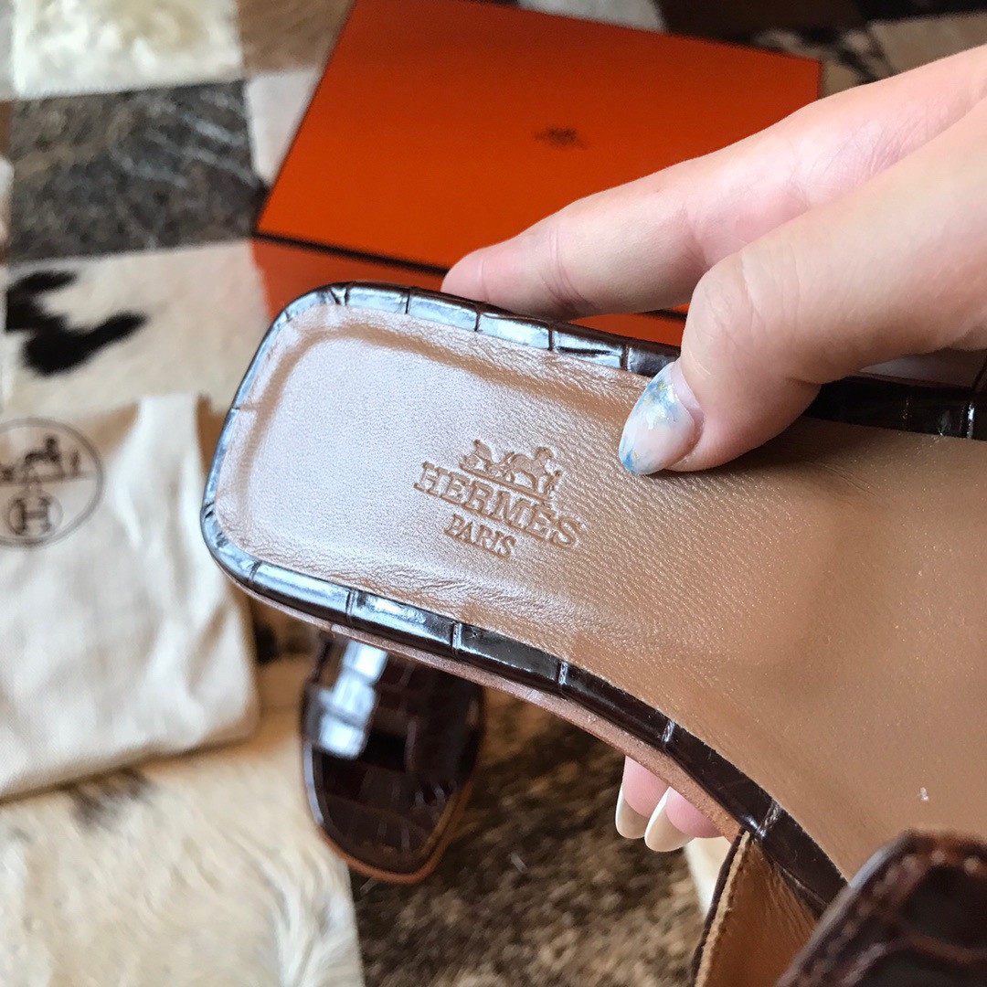 The most outstanding feature of the Oran sandal is the iconic H cutout that stands as a symbol of the Hermes brand that is known throughout the world and in fashion circles. The uppers of the Oran sandal are made of genuine Niloticus Crocodile skin which is flexible yet strong and durable for long life. This is an essential accessory for any woman’s wardrobe featuring the iconic Hermes style for casual wear.