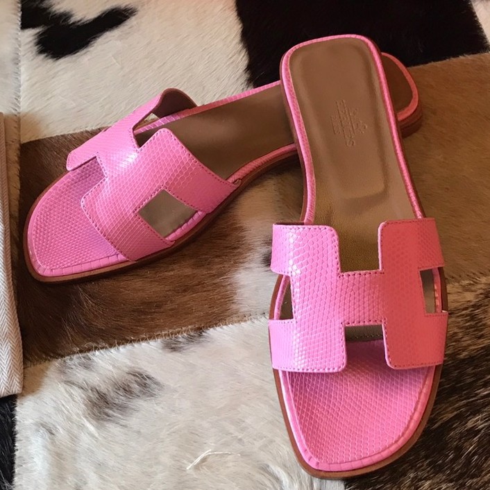 The most outstanding feature of the Oran sandal is the iconic H cutout that stands as a symbol of the Hermes brand that is known throughout the world and in fashion circles. The uppers of the Oran sandal are made of exotic Lizard leather, which is extremely valuable and rare and is processed as little as possible to maintain its natural texture. This is an essential accessory for any woman’s wardrobe featuring the iconic Hermes style for casual wear.