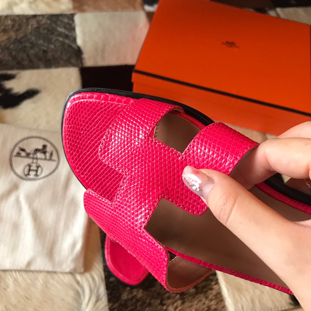 The most outstanding feature of the Oran sandal is the iconic H cutout that stands as a symbol of the Hermes brand that is known throughout the world and in fashion circles. The uppers of the Oran sandal are made of exotic Lizard leather, which is extremely valuable and rare and is processed as little as possible to maintain its natural texture. This is an essential accessory for any woman’s wardrobe featuring the iconic Hermes style for casual wear.