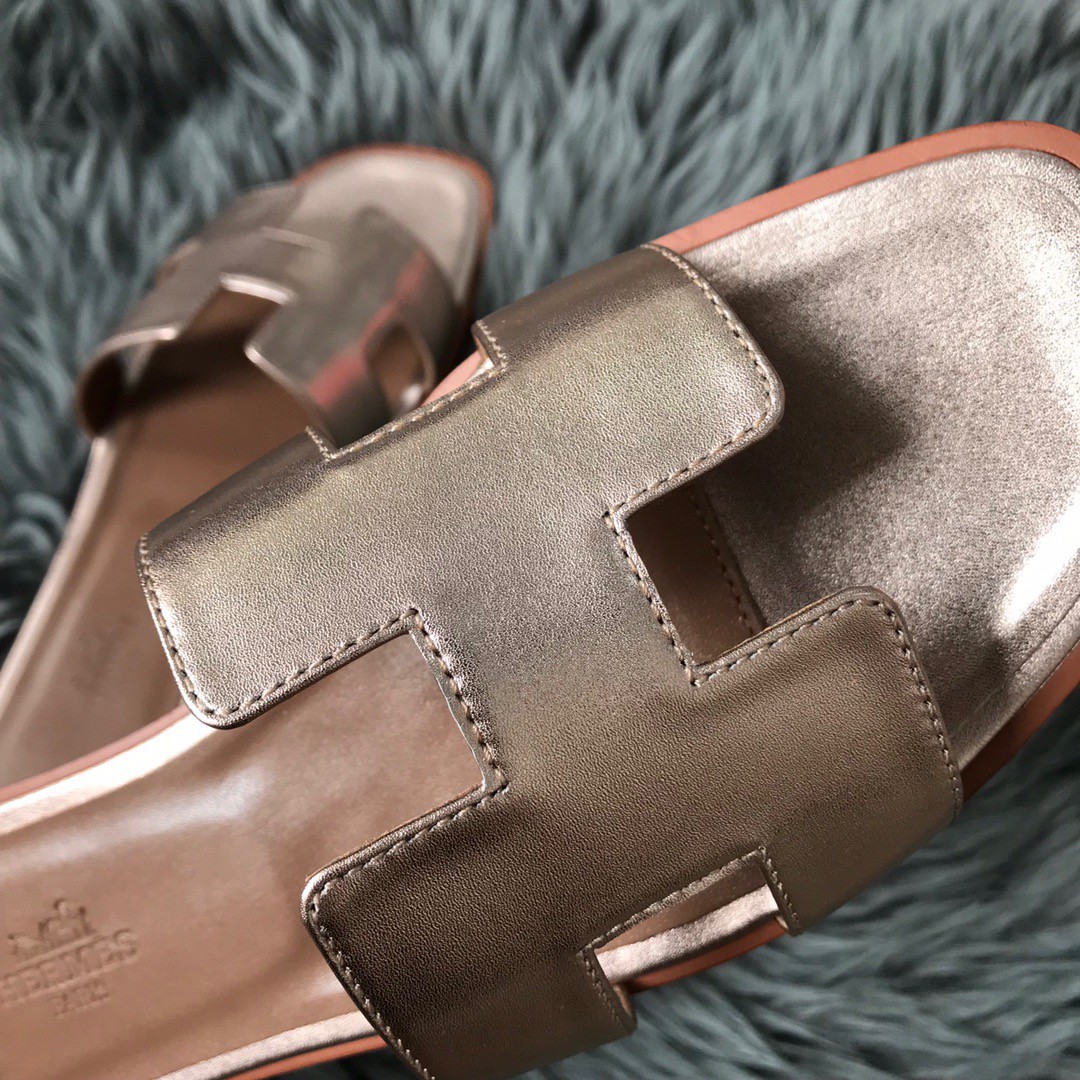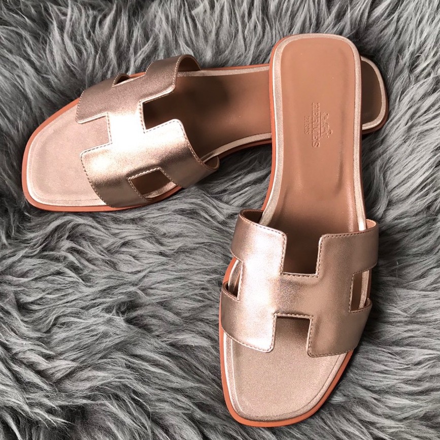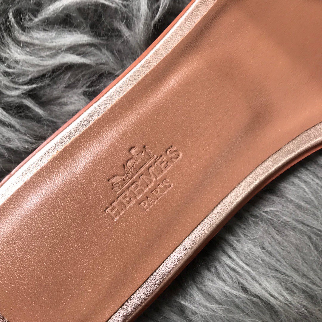 Hermes Oran Slide Sandals In Rose Gold Swift Calfskin