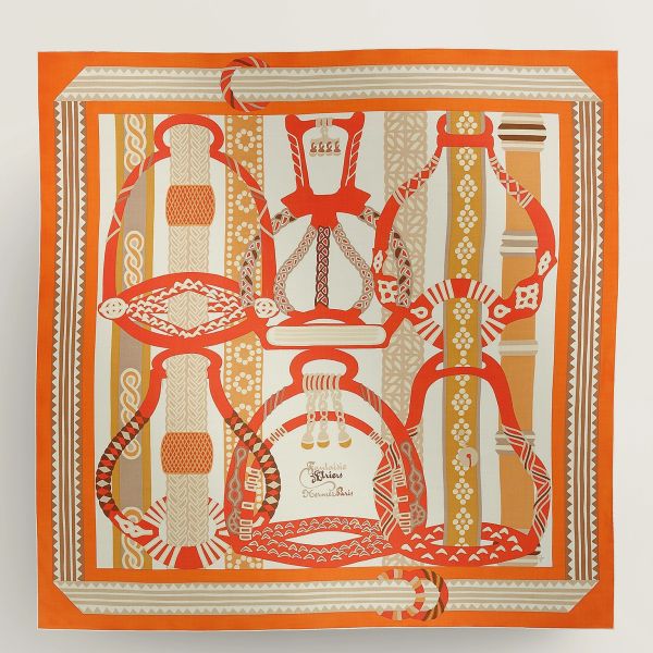 Hermes Orange Fantaisie d’Etriers Shawl 140