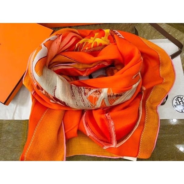 Hermes Orange Projets Carres Shawl 140
