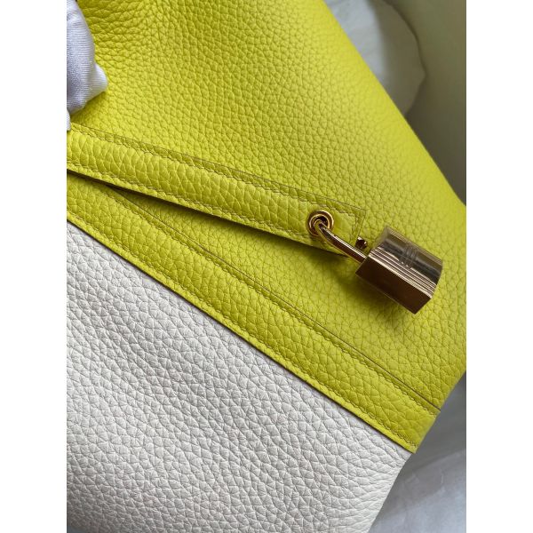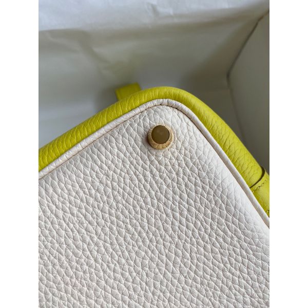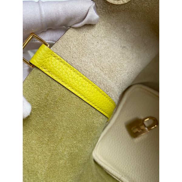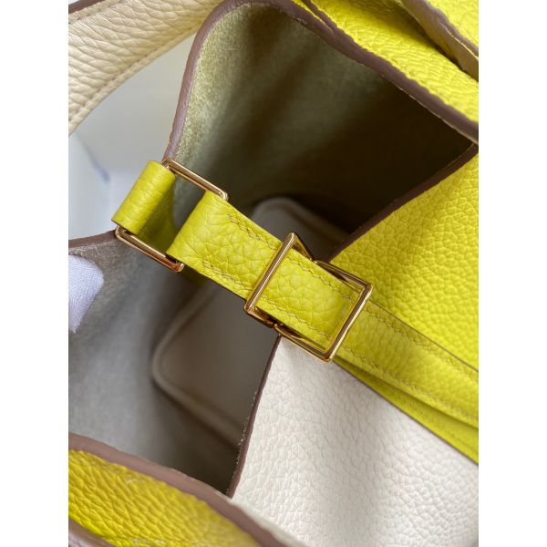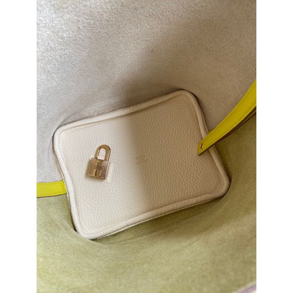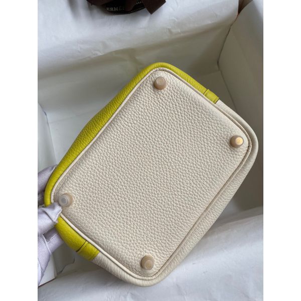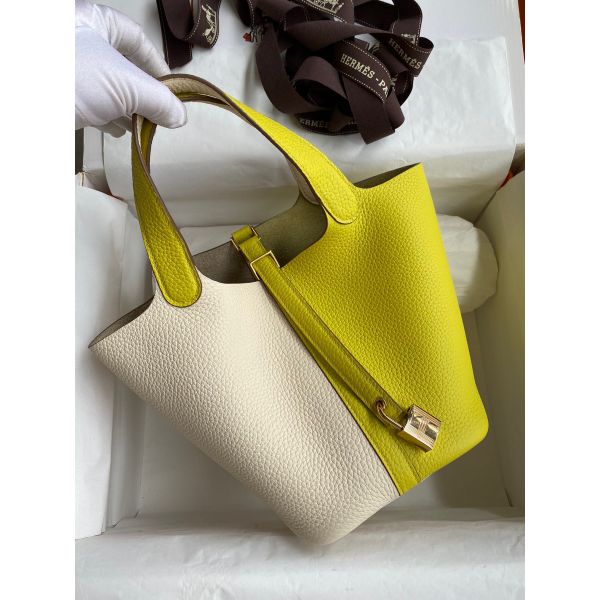 Hermes Picotin Lock 18 Bicolor Handmade Bag in Craie and Lime Clemence Leather