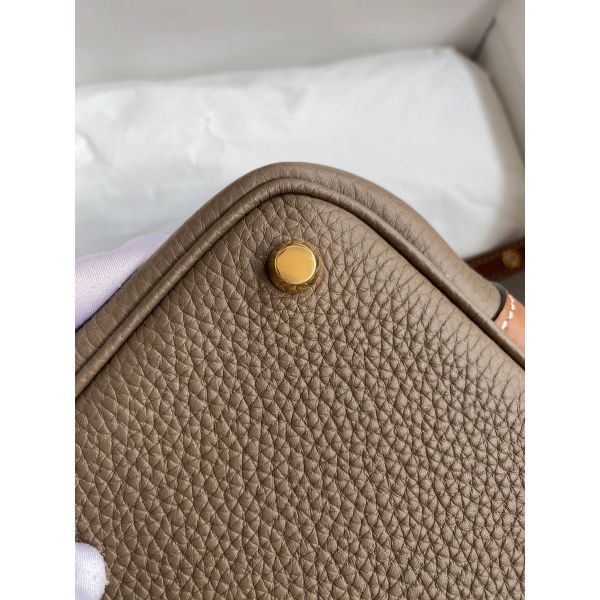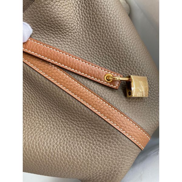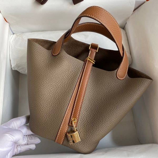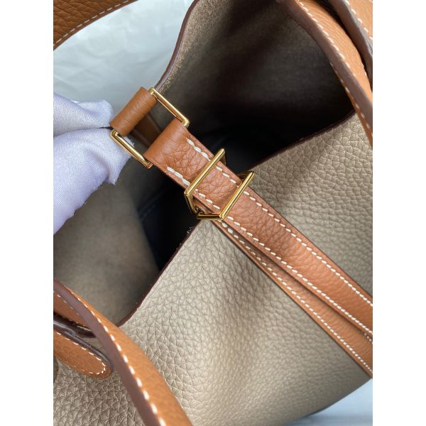 Hermes Picotin Lock 18 Bicolor Handmade Bag in Taupe and Gold Clemence Leather