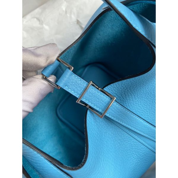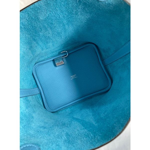 Hermes Picotin Lock 18 Handmade Bag in Blue du Nord Clemence Leather