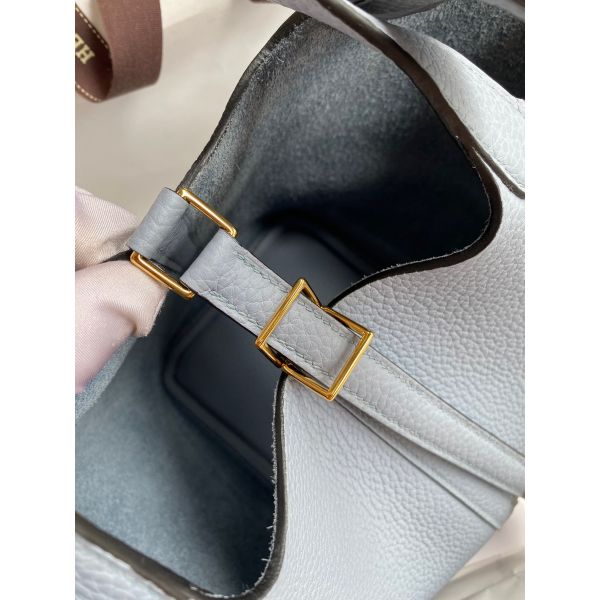 Introduced in 1958, the Picotin is true to the brand’s origins as an equestrian harness and tack manufacturer for French nobility. The Picotin has a few crucial design elements that elevate it to an exquisite fashion accessory. The Hermès Picotin 18 is the smallest bucket bag of the Picotin line and a particular favorite among Hermès enthusiasts. The Picotin 18 is the epitome of casual-chic, an upscale tote that adds a note of brilliance to your look.
