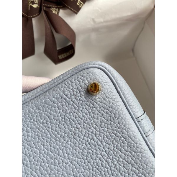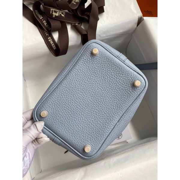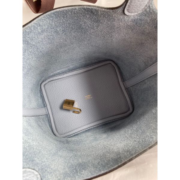 Hermes Picotin Lock 18 Handmade Bag in Blue Lin Clemence Leather