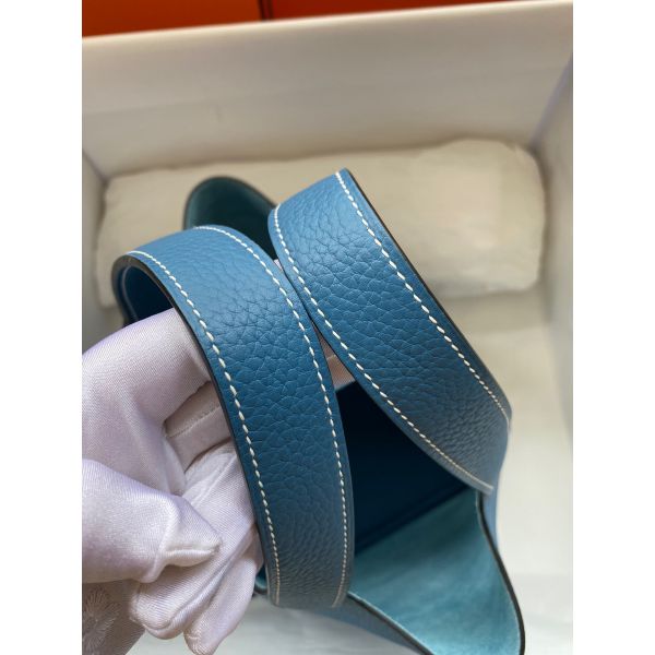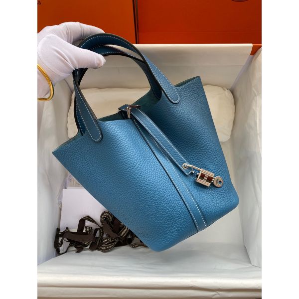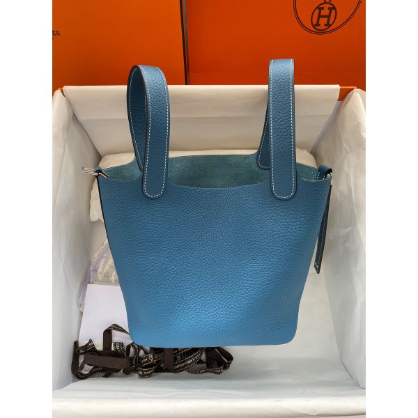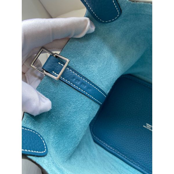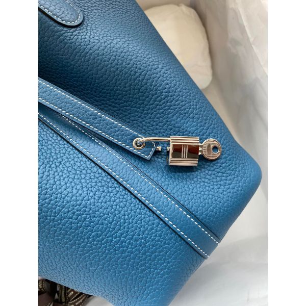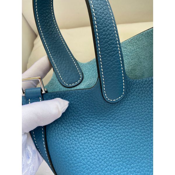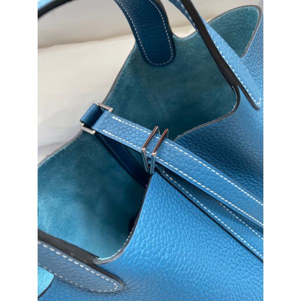 Hermes Picotin Lock 22 Handmade Bag in Blue Jean Clemence Leather